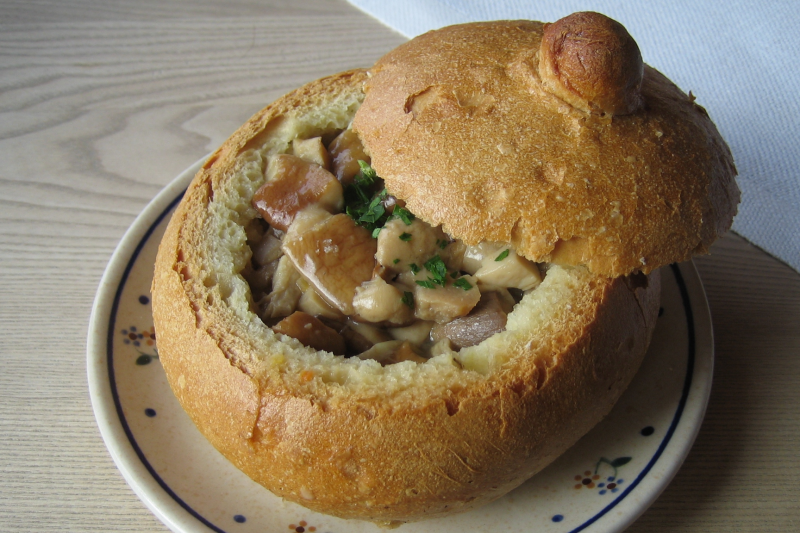 Are you looking for a cheap and easy starter that will impress all your dinner party guests? Created to mark the 150th anniversary of the local church, and served in a rustic bread roll, this warming vegan casserole is something special. You could add a few leftover meat scraps if you're feeding flexitarians too.