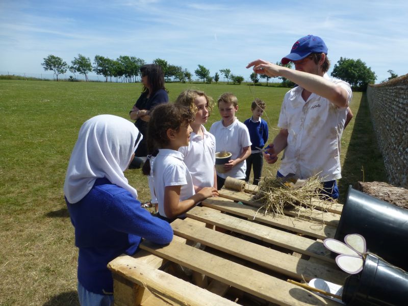 As part of this nature activity the children used sticks, hay, bamboo canes and recycled plant pots to fill the gaps between the pallets.