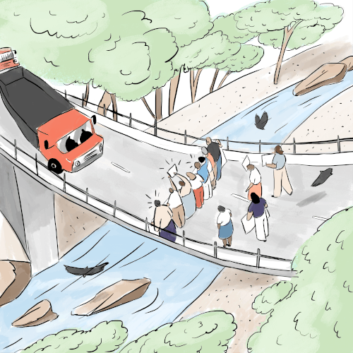 When works began, villagers supported by hundreds of locals, blocked the construction, not letting machines cross the bridge to the dam site.